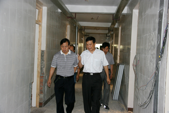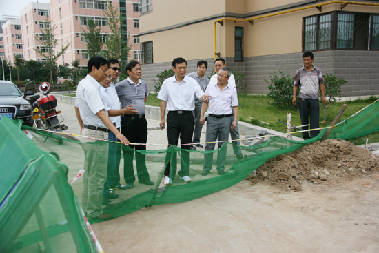 在14、15学生公寓楼建设工地,白校长、杨副校长登上学生公寓实地察看了室内工程建设情况,详细询问了建设中的具体细节及相关问题,并提出了一些意见和要求,白校长同时强调要在严格保证工程质量和施工安全的前提下,狠抓项目管理,确保工程进度,按期完成全部施工任务,确保开学前交付使用;在新校区北门改造工地,白校长详细询问了工程建设情况及校园管网系统情况,强调要认真施工,保证质量;在新校区学生洗浴中心改造工地,白校长仔细查看了施工现场,询问了施工当中存在的问题,他指出要充分考虑到学生的实际需求,确保工程质量;随后白校长、杨副校长来到老校区幼儿园前园林改造工地、老校区1号教职工单身公寓改造工地、老校区锅炉房新购锅炉安装等施工现场检查工程建设进展情况,要求各施工单位和主管部门要详细列出施工进度报告,在确保工期的基础上狠抓质量。在各施工现场,白校长还代表学校向冒着酷暑加班加点施工的有关部门管理人员和施工单位表示感谢和慰问。