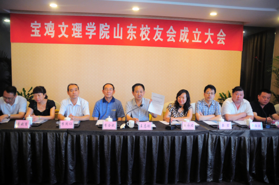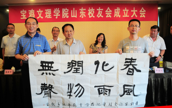 王志刚代表学校对山东校友会的成立表示热烈祝贺!他向广大校友通报了学校多年来特别是进入新世纪以来学校建设、发展所取得的成绩和成就:新校区的建成和使用,标志着学校办学条件的改善;实施质量立校战略“本科教学水平评估获优”,标志着母校教育教学水平和人才培养质量跨入全国优秀高校的行列;实施学科兴校战略,获批为硕士学位授予单位,标志着学校办学层次从本科教育层次提高到研究生培养层次;人才强校发展战略的实施,使得教师结构不断优化、教师队伍的整体素质和能力不断提升;文化铸校和特色名校战略的实施,重视和加强大学文化建设、特色建设,包括校友文化建设,使得母校的社会影响力和知名度不断提高;服务地方战略的实施,校地合作的良性互动,使得母校筹建多科性大学----“宝鸡大学”的工作全面启动。他还从三个方面阐述了他的校友观:“校友是母校的名片”,用人单位和社会各界是通过每一位校友的为人和工作业绩来认识和了解母校的;“校友是母校大学文化和大学精神的创造者、实践者和传承者”,校友们在学校学习生活的四年,不仅参与了学校的建设发展,也参与了母校大学文化和大学精神的建设,毕业后又把这种优良的校风、学风带到了工作岗位上,取得了优异的成绩;“校友是母校的最大财富,是学校建设发展的重要资源和最为可靠的支持力量”,校友们自毕业以来,感恩母校、情系母校,以各种方式关心支持母校,母校也时刻关注着校友们的发展,是校友们永远的精神家园和事业人生发展的坚强后盾。