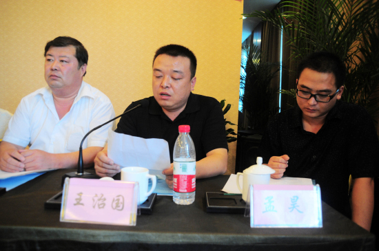 美术系美术专业08届毕业生孟昊宣读“山东校友会章程”和校友理事会人员名单