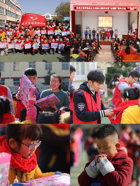 11月30日,校团委、扶贫办公室组织beat365官网15名青年志愿者前往beat365官网对口帮扶的太白县马耳山村,开展以“一红带一片,一片暖一冬”红围脖暖冬行动,将beat365官网大学生亲手编织的110条爱心红围脖、手套和学习用品送到孩子们手中,并在鹦鸽镇中心小学开展了“大手拉小手”青春助学结对活动。