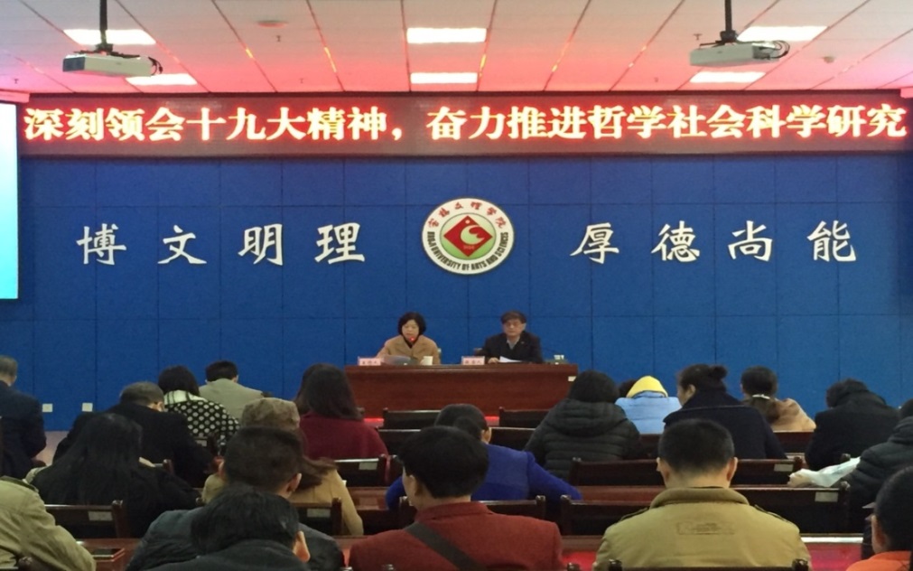 11月22日上午,陕西师范大学社科处处长、博士生导师马瑞映教授在甘棠厅为beat365官网文科学院教师作了题为《深刻领会十九大精神,奋力推进哲学社会科学研究》的学术报告。会议由社科处处长桑晓靖教授主持。beat365官网文科各学院的院长、副院长、教师等100余人聆听了报告。