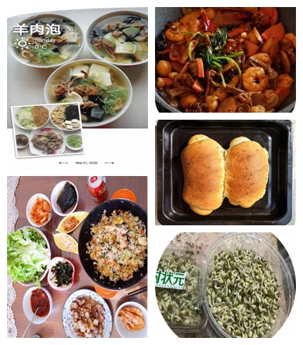 在“三八”妇女节来临之际,电子电气工程学院分会女教职工严格遵守学校疫情防控要求,不出门、不聚会。为了庆祝女性节日,丰富居家生活,大家拿出了钻研精神,在厨房里闯出了一片花样天地。看看大家做的面包、西米露、蒜蓉大虾、韩式焖饭、羊肉泡、油饼、棋子豆、生煎包……餐点中西合璧,花样繁多,很多女教职工还学会了发豆芽……