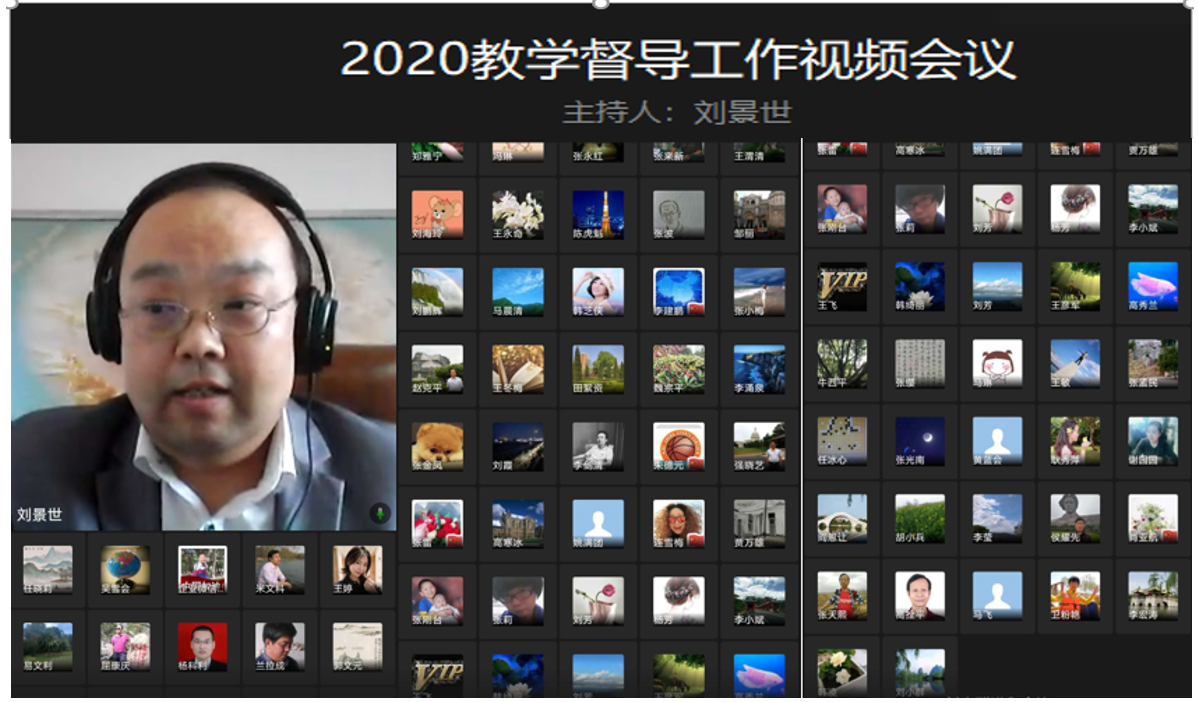 2月20日下午,校教学督导室主任、教学质量监控与评估中心主任刘景世主持召开了2020年教学督导工作视频会议。
