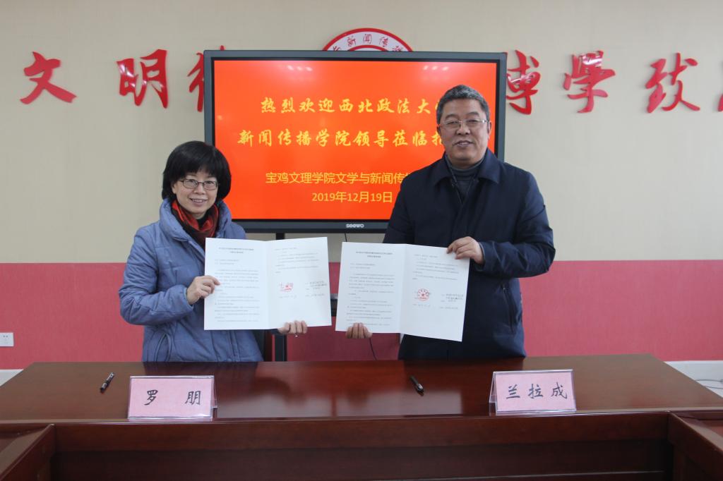 随后举行了西北政法大学、beat365在线唯一官网新闻与传播学硕士研究生优质生源基地共建协议签字仪式,标志着两校合作培养研究生工作正式启动。