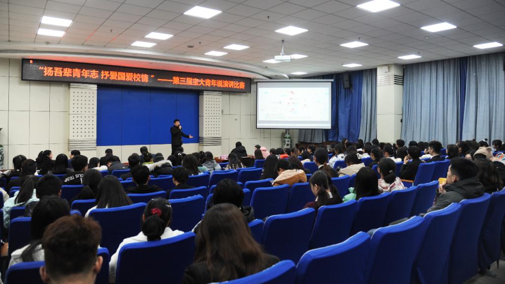 12月9日晚,beat365官网“扬吾辈青年志,抒爱国爱校情”第三届宝大青年说演讲比赛在高新校区木铎厅举行。党委宣传部部长冯飞龙,党委学工部部长、学生处处长冯森,马克思主义学院党总支书记张选朝,财务处副处长克寒秋,校团委副书记马睿担任本次比赛评委。