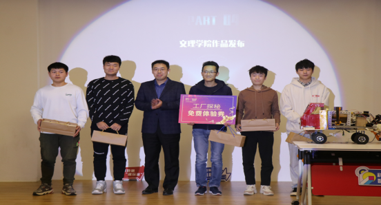 宝鸡吉利汽车公司工程师们在本次活动中展示了“人脸识别多功能生物魔盒”“一键智能调配装置”和“小罗M分拣装置”等高科技作品,工程师们天马行空的创意和诙谐幽默的讲解深受学生喜欢。