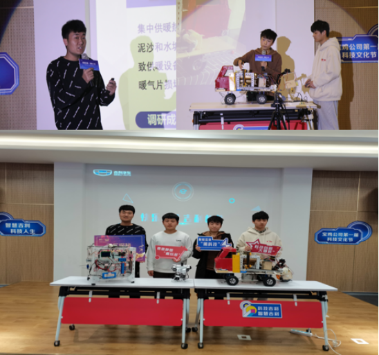 机械工程学院“互联网+”创新创业团队学生闫泳琪、肖刚、豆国豪、习佳俊,向宝鸡吉利汽车公司领导和各部门工程师介绍了“智能供暖除杂装置”和“智能高效城市公路养护车”等团队作品。