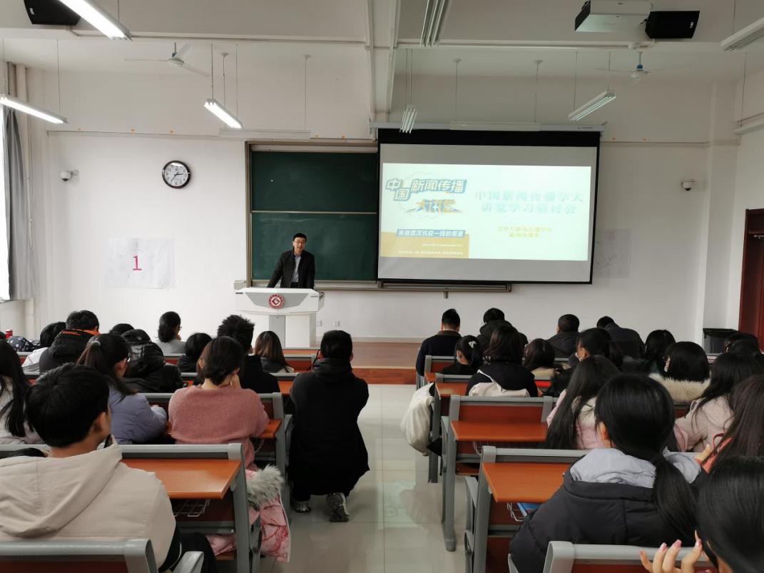 12月18日下午,文学与新闻传播学院在博文楼副楼301教室召开了中国新闻传播大讲堂学习研讨会。文传院副院长孟改正、新闻传播系主任仵军智、新闻教研室全体教师以及新闻传播系近120名学生参加了会议。研讨会由新闻教研室主任余亚莉主持。