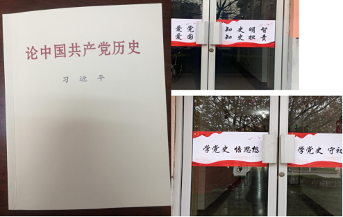 后勤管理处(后勤服务集团)党总支积极做好党史学习教育形式、方法、内容的“加法”,通过在学生生活区营造学习党史氛围、发放党史学习资料——习近平《论中国共产党历史》等多种形式,让党史学习教育在全体党员中热起来、活起来、实起来,迅速营造党史学习教育的浓厚氛围。
