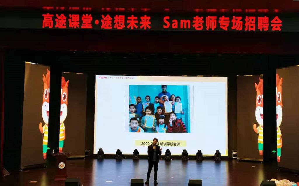 4月21日下午,高途课堂金牌主讲Sam老师专场招聘会在beat365官网博文楼报告厅举行,来自各学院近600余名学生参加了此次活动。