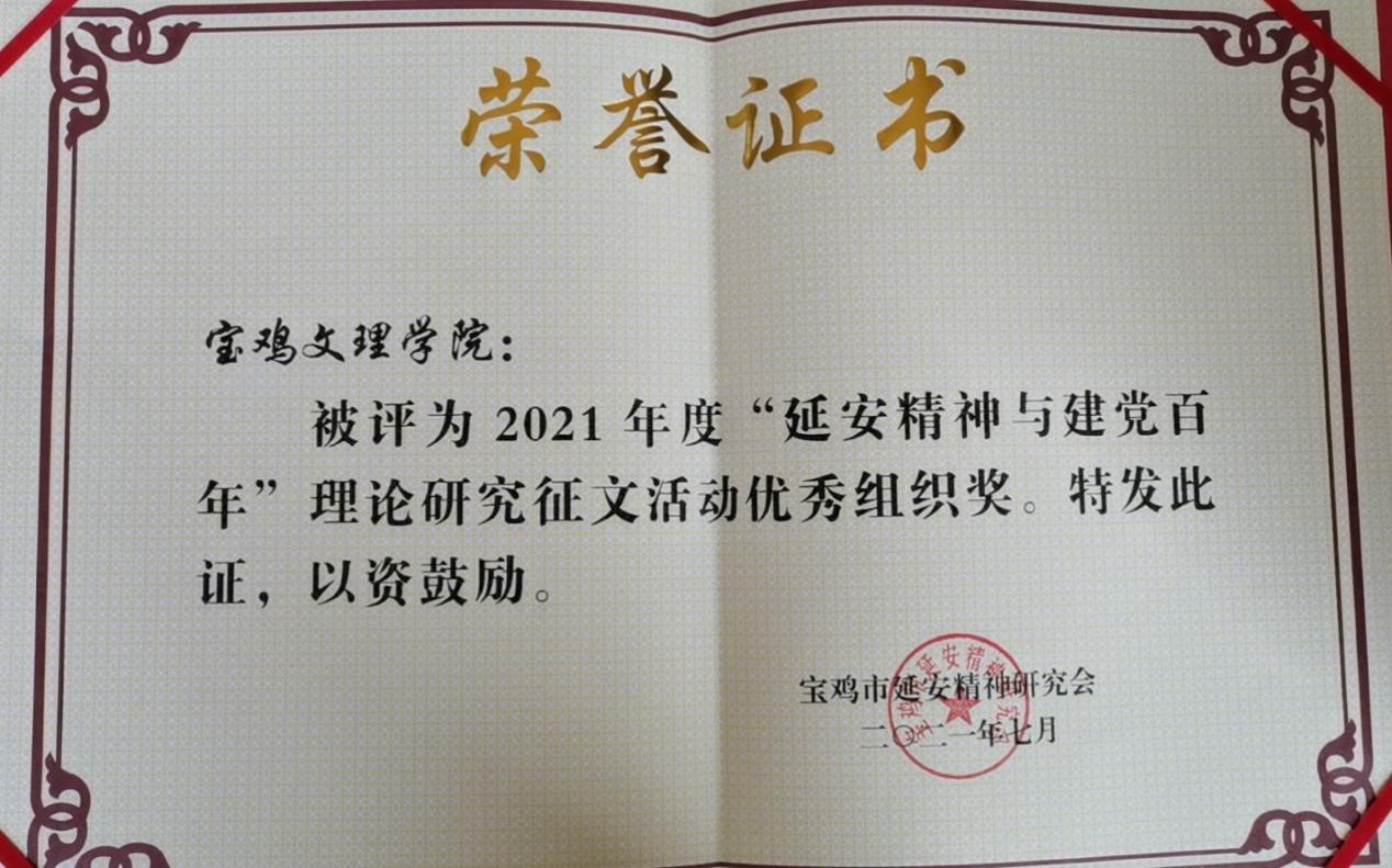 据悉,本次征文活动共收到论文近200篇,最终评出一等奖8名,二等奖12名,三等奖20名。beat365官网师生踊跃参与,获得佳绩。王红梅教授与其指导的研究生丁佳妮共同撰写的论文《延安时期中国共产党学哲学用哲学的经验启示》荣获一等奖,张全省教授的论文《百年来中国共产党坚持自我革命的历史经验与时代启示》获一等奖;王真副教授的论文《延安精神与新时代陕西青年成长成才耦合性关系探究》荣获二等奖,赵维恭副教授的论文《延安精神是中国共产党精神谱系之魂》荣获二等奖;罗玉兰老师的论文《新时代陕西青年传承和弘扬延安精神的路径探析》荣获三等奖,beat365官网硕士研究生李佳诚的论文《弘扬延安精神与坚定共产党人理想信念研究》荣获三等奖。beat365官网在此次征文活动中被授予“‘延安精神与建党百年’理论研究征文活动优秀组织奖”。(马克思主义学院 文、图/李佳诚 审核/刘晓勇)