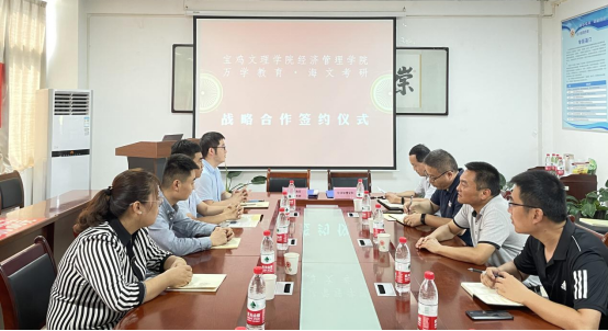 7月9日上午,经济管理学院与万学教育陕西海文培训学校在高新校区思贤楼320会议室举行了校企合作协议签约仪式。经济管理学院党委书记郝晓炜、院长刘辉、副院长杨嘉歆出席仪式。仪式由副院长刘晓科主持。
