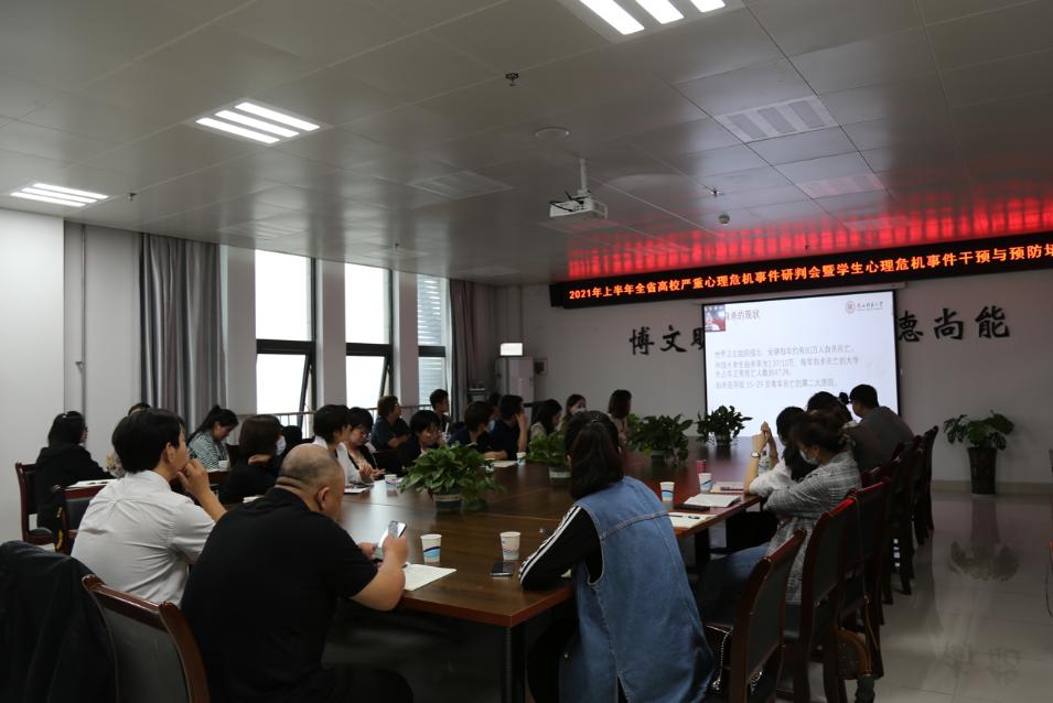 9月24日下午,陕西省委教育工委举办2021年全省高校严重心理危机事件研判暨学生心理危机事件干预与预防线上培训会。beat365官网学工部、研工部负责人,各二级学院副书记、分管心理工作的辅导员,心理咨询中心专职教师40余人在博文楼1301美术学院会议室参加了视频会议。