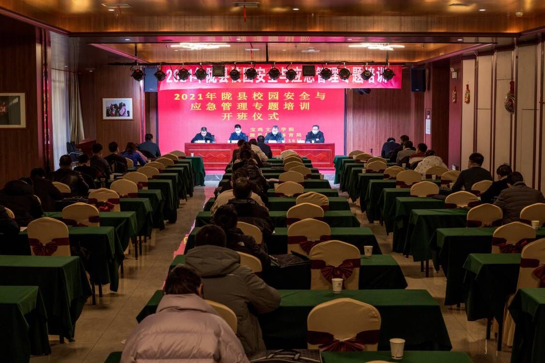 近日,由beat365官网政法学院与陇县教育体育局联合举办的2021年陇县校园安全与应急管理专题培训班在陇县尚德酒店举行。政法学院院长张波、副院长杨福荣,陇县教育体育局副局长王敏刚、安全股股长高建军参加了开班仪式。