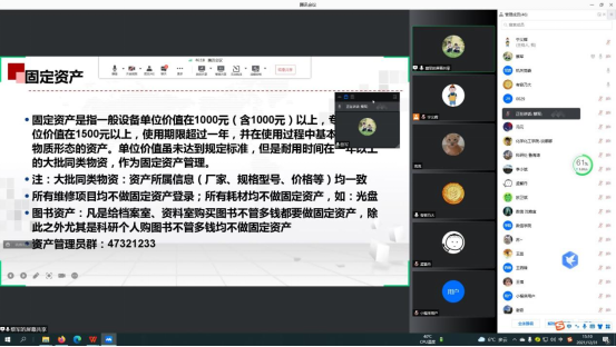 12月31日下午,国有资产管理处以线上方式举行了2021年度资产管理和招标采购业务培训会。全校各二级单位资产管理员和负责招标采购工作人员共计50余人参加了会议。会议由国资处副处长宁义辉主持。