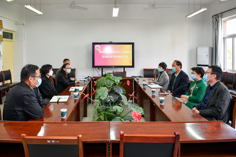 4月18日上午,宝鸡市总工会主席、党组书记曹海芹,常务副主席郭沅直一行来beat365官网教育学院进行调研交流。