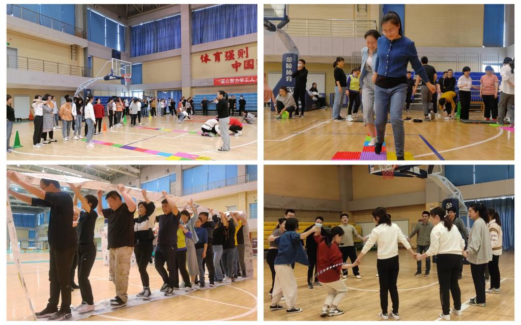 在工作人员的组织下,全校77名辅导员分为四队。先后开展了“一圈到底 ”“指压板跳绳”“无敌风火轮”等团建体验式活动,全体辅导员通过竞争与合作方式,经历了一场减压与成长之旅。活动过程中,全体成员默契配合,互相鼓励,充分彰显了辅导员队伍的青春活力和团结友爱,积极向上的进取精神。