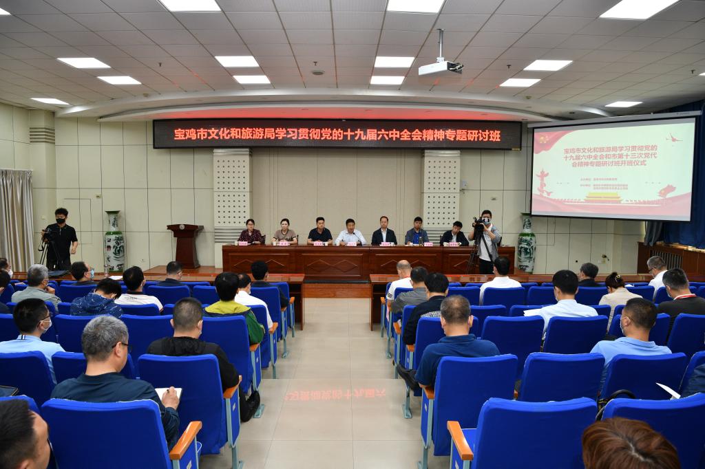 5月26日上午,由宝鸡市干部教育培训高校基地承办的宝鸡市文化和旅游局学习贯彻党的十九届六中全会和市第十三次党代会精神专题研讨班在beat365官网高新校区木铎厅开班。宝鸡市文化和旅游局党组书记、副局长毛永祥、翟莉、巨水存、段军林及局机关、下属单位党员干部参加了开班仪式。开班仪式由宝鸡市干部教育培训高校基地主任、马克思主义学院教授王红梅主持。