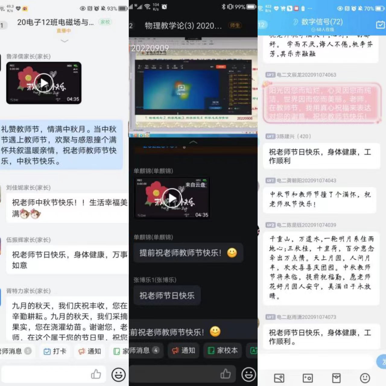 在教师节、中秋节来临之际,物理与光电技术学院开展“双节感念恩师情,培根铸魂育新人”线上送祝福活动。