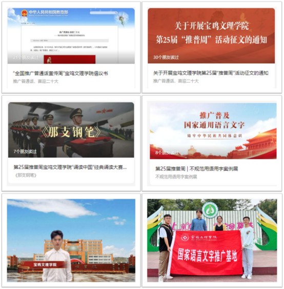 一是向全校发出倡议书,号召全体师生积极参与到国家通用语言文字推广活动中来;二是开展第25届推普周征文,说普通话,写规范字,讲好中国故事;三是举办beat365在线唯一官网“诵读中国”经典诵读大赛优秀作品展,赓续红色基因,传播中国价值;四是携手宝鸡铁路小学开展推普活动,用有温度的声音传递伟大的中国梦;五是开展不规范用字案例展,增强语言文字规范意识;六是参与中国教育电视台推普周特别节目节庆日诵读直播,践行语言文化的育人使命。