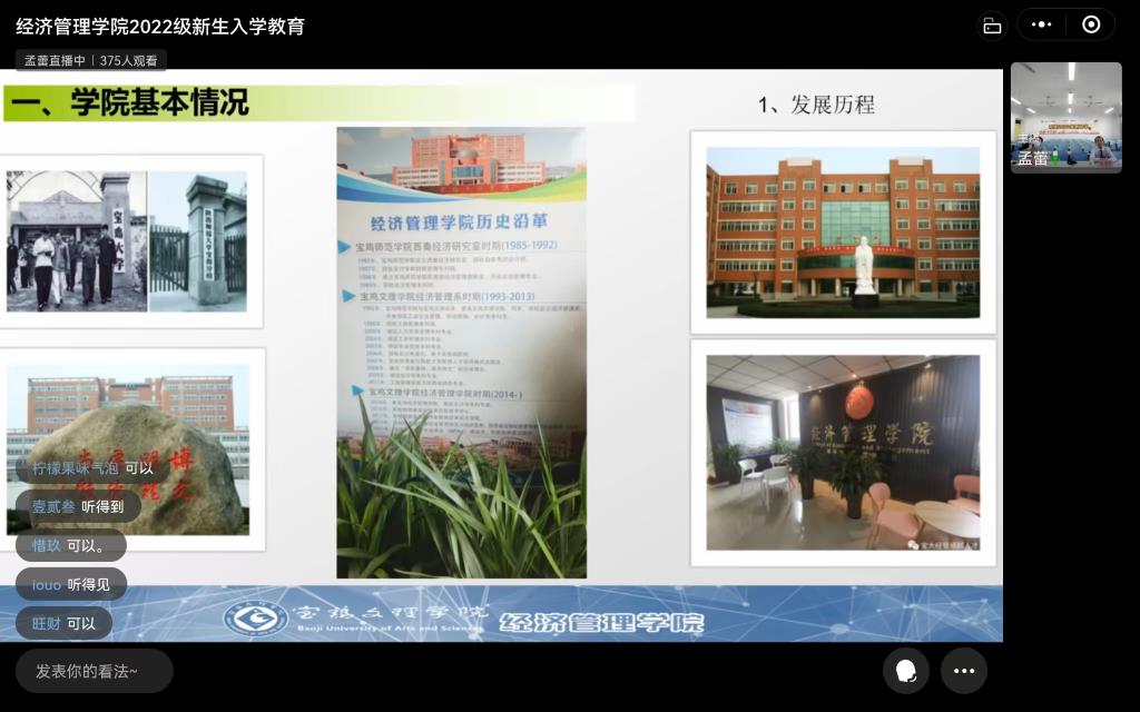 9月17日至18日,beat365官网在线上集中开展了2022级本科新生入学教育。本次新生入学教育聚焦立德树人根本任务,以“喜迎二十大,启航新征程”为主题,学工部、各二级学院精心组织开展了丰富多彩的教育活动,对新生进行了以理想信念教育、社会主义核心价值观教育、“四史”学习教育、社会主义法治教育、爱校荣校教育等为主要内容的思想政治教育和价值引领,以校园疫情防控知识教育、校纪校规教育、安全教育、心理健康教育、文明行为教育和网络安全教育为主的学生管理教育,以专业认知教育、角色转换教育、学业规划和职业生涯规划教育为主的发展规划教育,帮助新生尽快完成角色转变,了解、适应、融入大学生活,扣好大学生活的“第一粒扣子”。
