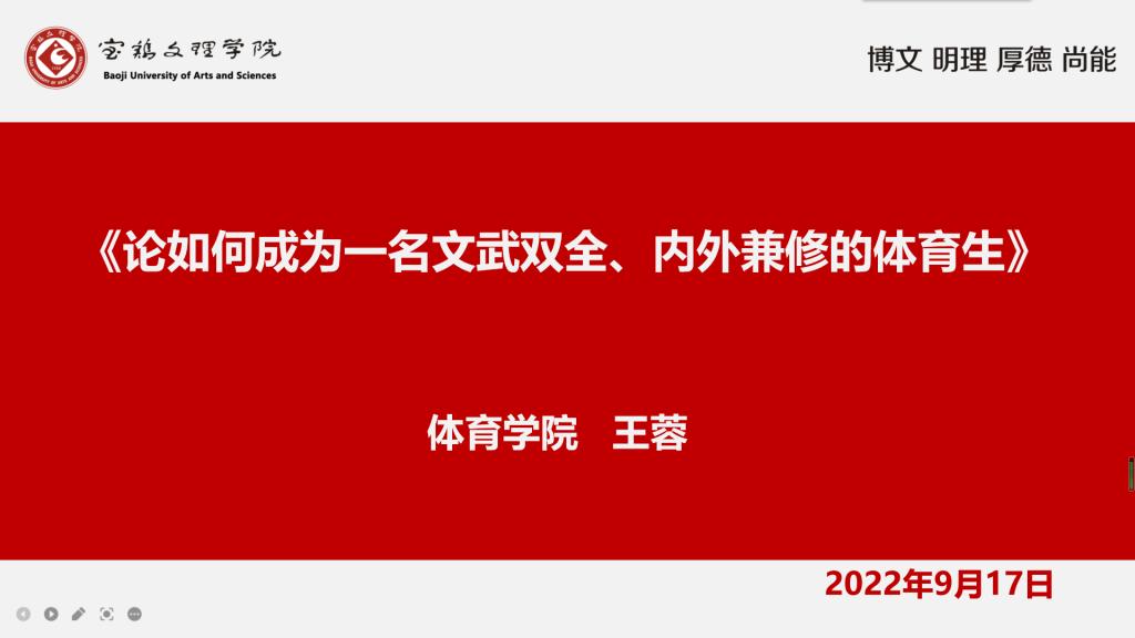 体育学院立足体育学科特色,突出“高素质、精专业、厚基础、强能力、多出口”的人才培养理念,教育引导新生成为“文武双全、内外兼修”的体育学子。