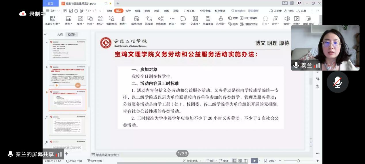 数学与信息科学学院开展了“助学筑梦铸人”专题资助政策宣讲,帮助新生了解中央、地方、学校各项学生资助政策,强化学生诚信认知,增强学生学习动力和信心。