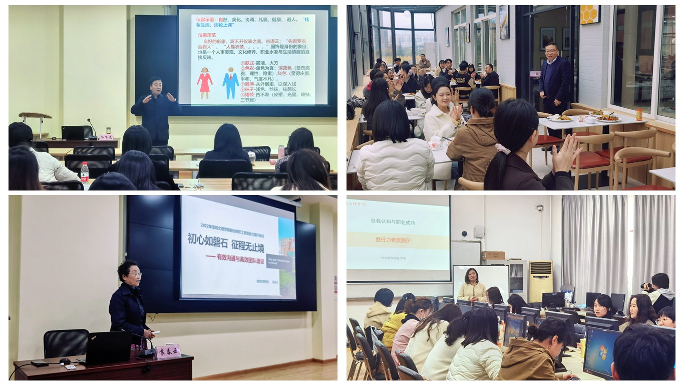 培训邀请校党委宣传部部长冯飞龙教授,经济管理学院管理系袁春云副教授、芦蕊副教授分别作了主题为《高校青年教师师德师风建设与行为礼仪规范》《“初心如磐石,征程无止境”有效沟通与高效团队建设》《胜任力素质测评》的报告。