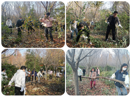 11月16日下午,后勤管理处(后勤服务集团)党总支和经管学院党委在高新校区基建楼北侧樱花林联合开展“净化环境美化校园 我是党员我先行”主题党日活动。