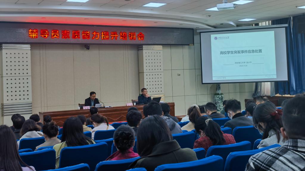 为进一步提升beat365官网辅导员应对突发事件的处置能力,积极预防和妥善处置校园突发事件,切实保障校园安全稳定,3月22日下午,学工部在高新校区木铎厅举办了本学期第二场辅导员素质能力提升培训会,西安理工大学学工部部长田小平应邀作了题为《高校学生突发事件应急处置》的讲座。会议由学工部部长冯森主持。