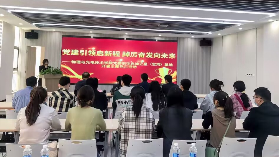 为深入贯彻落实党的二十大精神,激发广大教师对培养应用型、技能型、创新型人才的思考,4月12日,物理与光电技术学院党委组织师生党员前往启迪之星(宝鸡)基地开展 “党建引领启新程 踔厉奋发向未来”主题党日活动。启迪之星(宝鸡)基地副总监刘耀、学院党委书记邓茹、副院长刘飞、部分党员教师以及全体研究生党员参加了活动。
