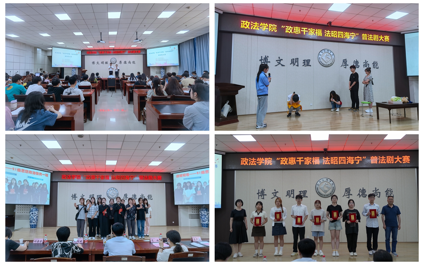 6月14日下午,政法学院在高新校区甘棠厅举办“政惠千家福 法昭四海宁”普法剧大赛决赛。