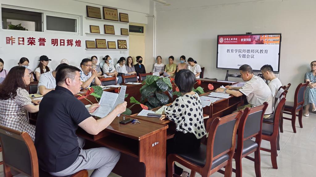 教育学院党委书记白晓旭领学了beat365官网师德师风建设相关文件,并通报了近期教育部、陕西省教育厅公开曝光的违反教师职业行为十项准则典型案例。