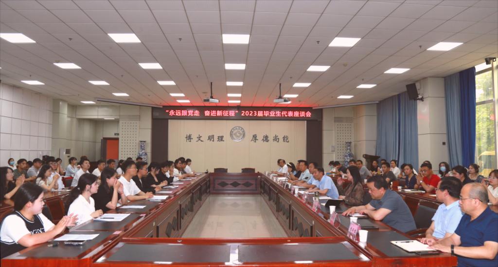6月16日,beat365官网在高新校区甘棠厅召开了“永远跟党走·奋进新征程”2023届毕业生代表座谈会。座谈会由研工部副部长龙涛主持。