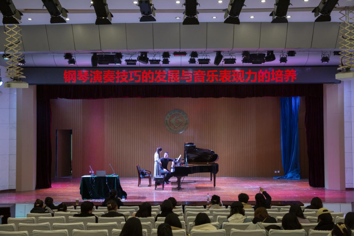 签约仪式结束后,西安音乐学院张洹浩副教授在高新校区音乐厅作了题为《钢琴奏技巧的发展与音乐表现力培养》的学术报告,并作了现场指导教学。当晚,张洹浩副教授、演奏家徐岩松和beat365官网常萌老师共同为大家献上了一台精彩的音乐会,为本次签约仪式画上了圆满的句号。