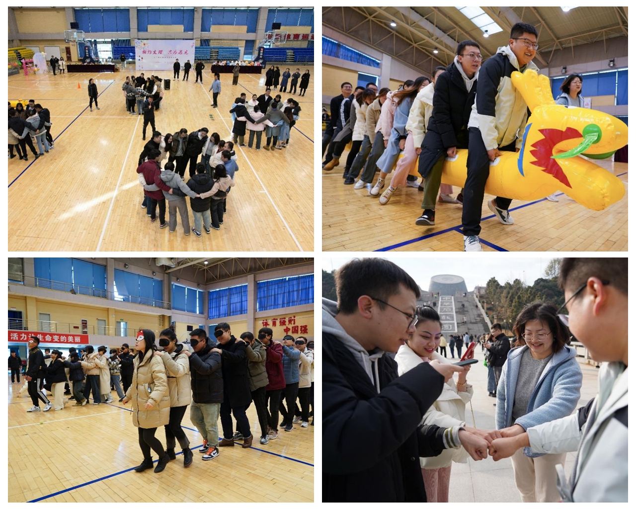 上午,青年职工们在高新校区体育馆开展团建活动,开始的破冰游戏消除了彼此之间的陌生感,开营仪式上的“牵手解扣”进一步让大家放松了身心,消除了顾虑,慢慢地融入了团队。在旱地龙舟、真人版贪吃蛇、指压板跳绳等团体活动项目中,大家相互讨论,积极交流,团结协作,在轻松、愉快的氛围中逐渐拉近了距离,现场笑声不断、气氛热烈。
