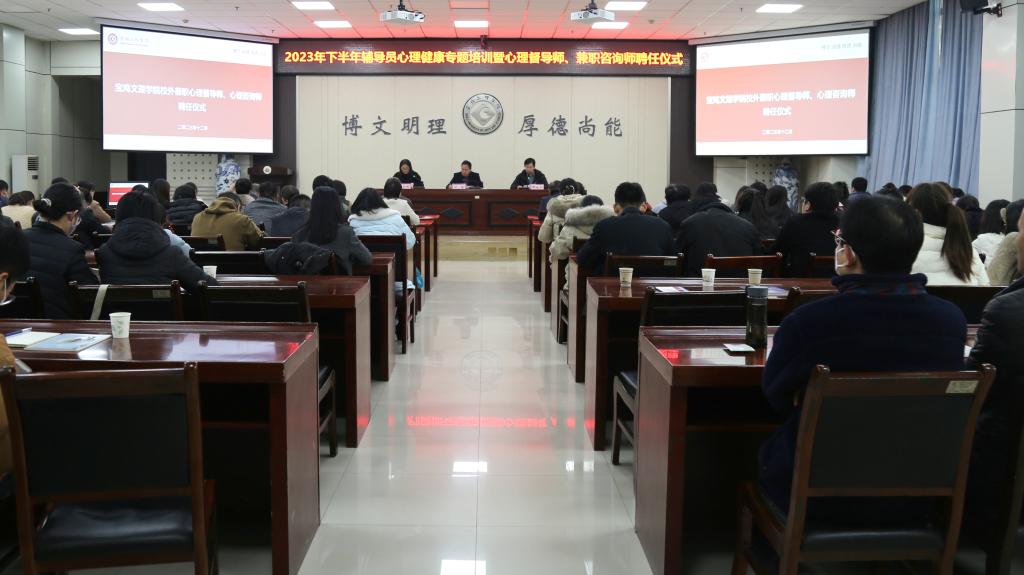 12月1日下午,学工部、大学生心理健康教育与咨询中心在甘棠厅举办2023年下半年辅导员心理健康专题培训暨兼职心理督导师心理咨询师聘任仪式。王向锋主持了聘任仪式。
