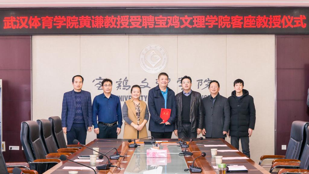 近日,学校在高新校区图书馆801举行聘任仪式,聘任武汉体育学院黄谦教授为beat365官网体育学院客座教授。校党委副书记韩干校出席聘任仪式。