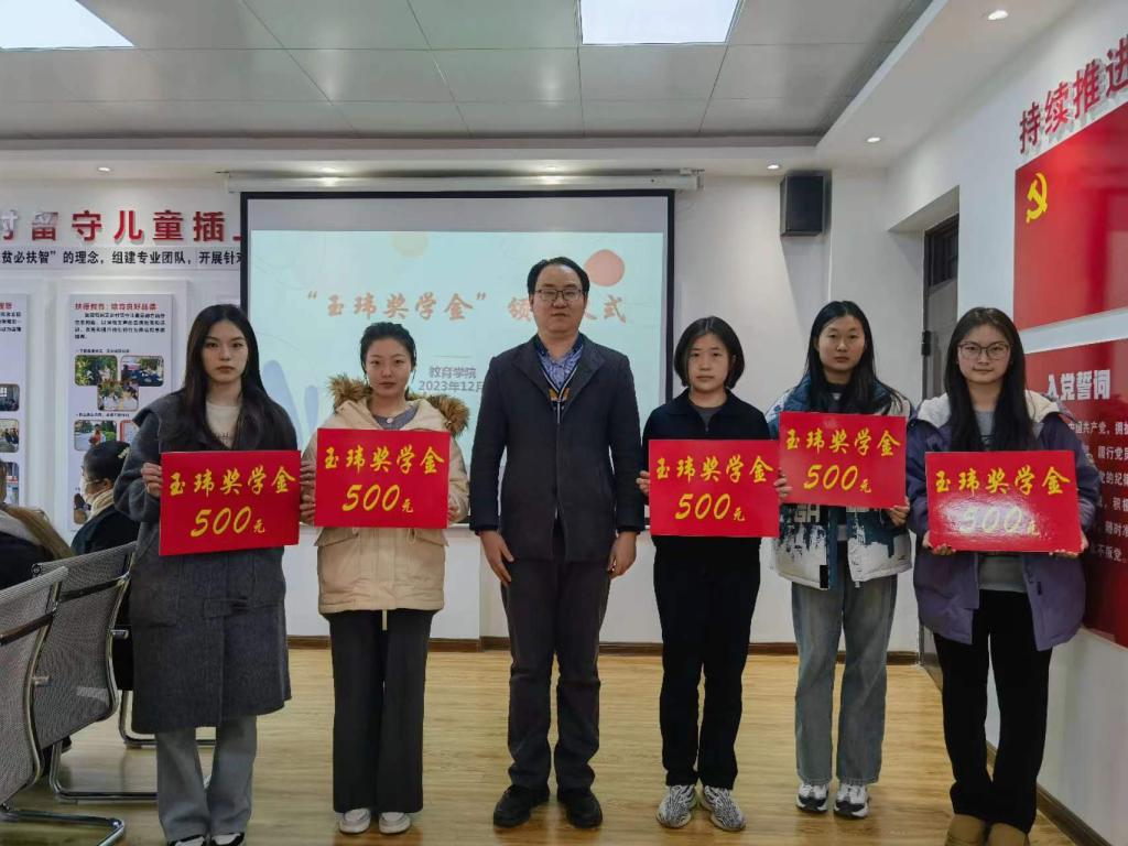 12月20日下午,教育学院在高新校区立心楼225会议室举行“玉玮奖学金”颁奖仪式。“玉玮奖学金”捐助人姚玉玮出席颁奖仪式并讲话,学院党委副书记屈金梅主持颁奖仪式。