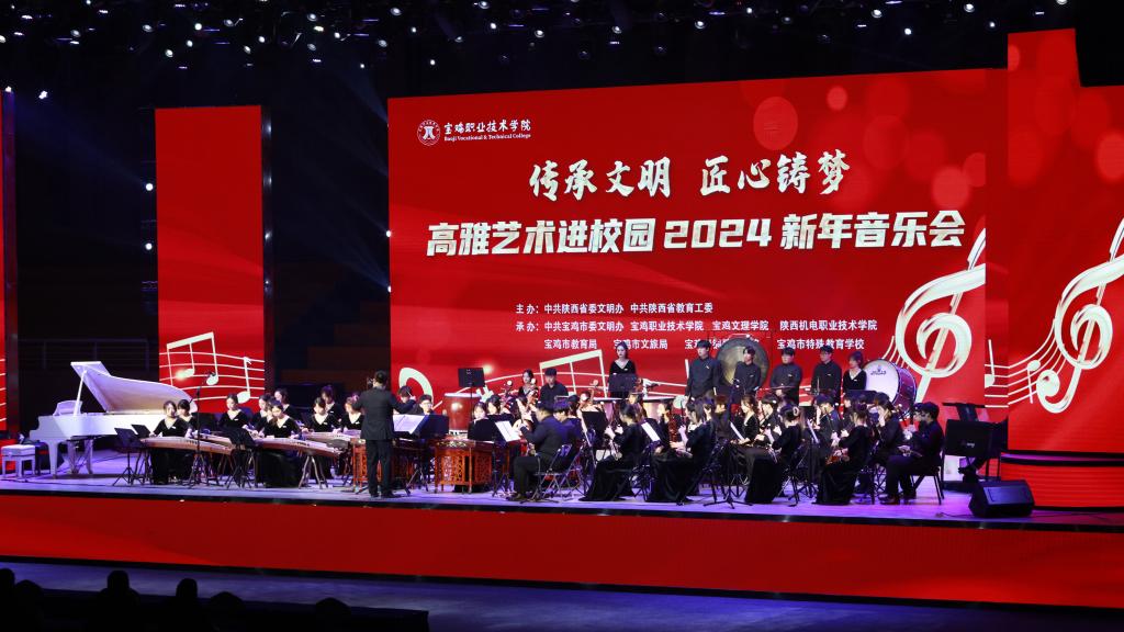 12月27日,学院师生应邀走进宝鸡职业技术学院参加“传承文明 匠心铸梦”高雅艺术进校园2024新年音乐会。此次活动在丰富学生校园文化生活的同时,为beat365官网学生增加舞台经验提供了良好的平台,展示学院教学成果,展现大学生良好的精神风貌。