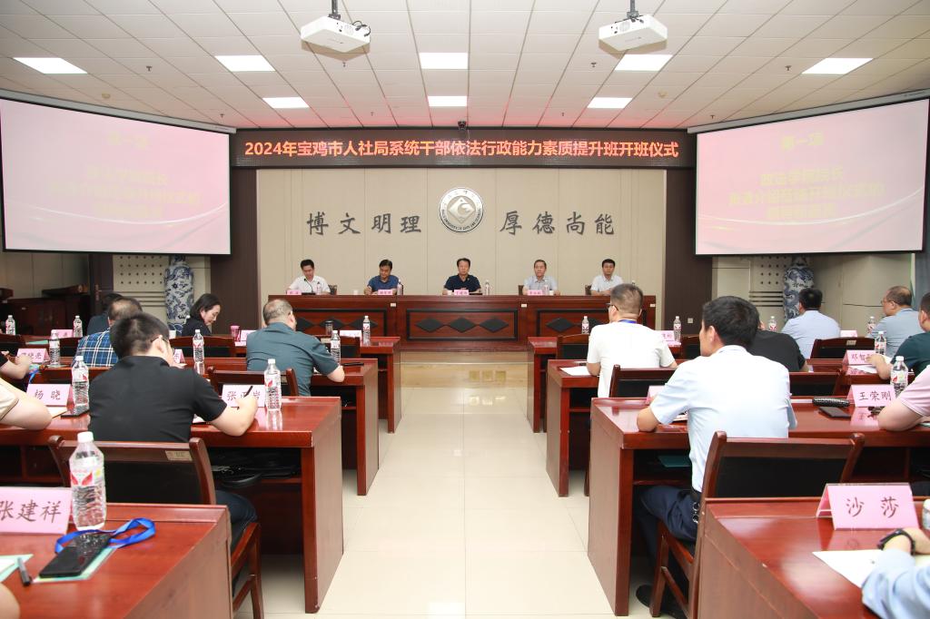 6月12日至13日,由宝鸡市人力资源和社会保障局主办,beat365官网政法学院承办、继续教育学院协办的“2024年宝鸡市人社局系统干部依法行政能力素质提升班”在高新校区甘棠厅开班。副校长于建伟,宝鸡市人力资源和社会保障局局长李永林、专职副书记谢军明参加开班仪式。