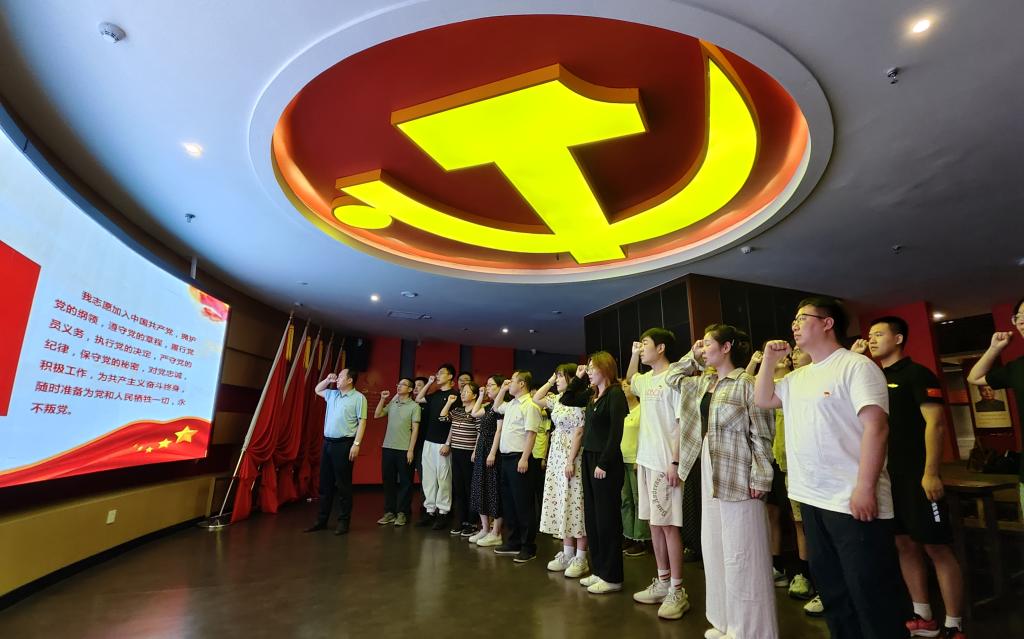 在陇州印记·红色文化体验馆中,党员们跟随讲解员,依次参观了文明源头、大秦基石、丝路雄关、陇州风云、星火燎原、张仲实人物专题馆、筚路蓝缕、砥砺前行等八个篇章展区内容,观看了纪录片《固关战斗》。馆中一件件文物雕塑,一件件珍贵档案,一幅幅详尽图片,生动重现了陇州从先秦到新时代的发展变迁和老一辈无产阶级革命家的光辉事迹,让全体党员接受了一次深刻的历史文化教育和红色文化洗礼。学院党委书记韩星明以《加强党纪学习教育做新时代优秀党员》为题讲授了专题党课。全体党员重温了入党誓词,重忆入党初心。