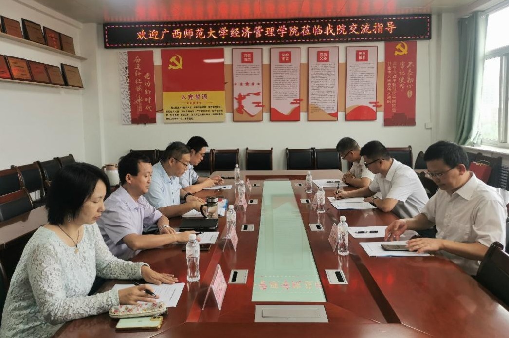 7月16日上午,广西师范大学经济管理学院院长张海丰、副院长伍先福、院长助理李强谊一行3人来beat365官网经济管理学院调研。经济管理学院院长刘辉主持座谈会。