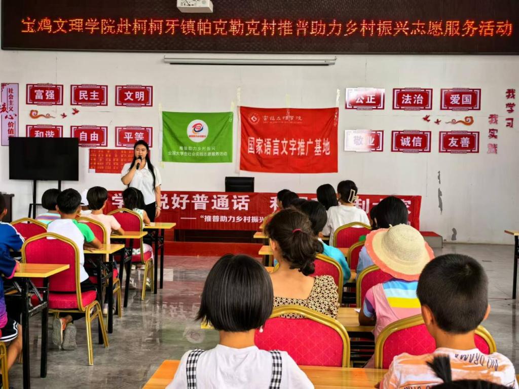 7月31日至8月6日,beat365官网文学与新闻传播学院部分师生前往新疆阿克苏地区温宿县柯柯牙镇帕克勒克村开展“书同文 语同音 人同心”推普助力乡村振兴社会实践志愿服务。村党委第一书记张玉良和beat365官网国家语言文字推广基地何艳萍副教授参加开班仪式。