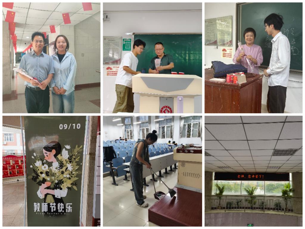 共筑美好,铭记师恩。教师节当天,学院领导与优秀教师代表交谈,关注老师工作和生活中的困难,表达学院的感谢和祝愿之情;学院团总支、学生会组织学生向教师们送上鲜花,用实际行动温情告白,感恩老师在思想、学业、生活上给予的帮助和支持。