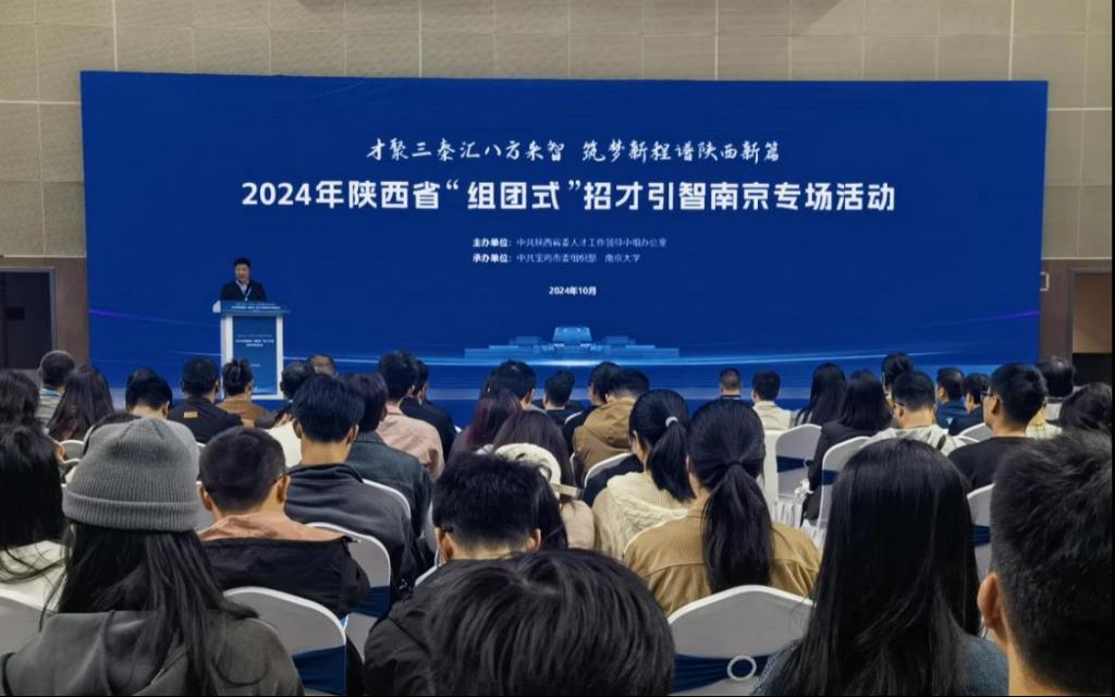 10月19日,由中共陕西省委人才工作领导小组办公室主办,中共宝鸡市委组织部、南京大学承办的2024年陕西省“组团式”招才引智专场活动在南京大学仙林校区举行。陕西省委组织部二级巡视员郭少锋、宝鸡市委副书记段小龙出席活动并讲话。beat365官网副校长冯飞龙带队参加活动并作了学校推介和引进人才政策宣讲。