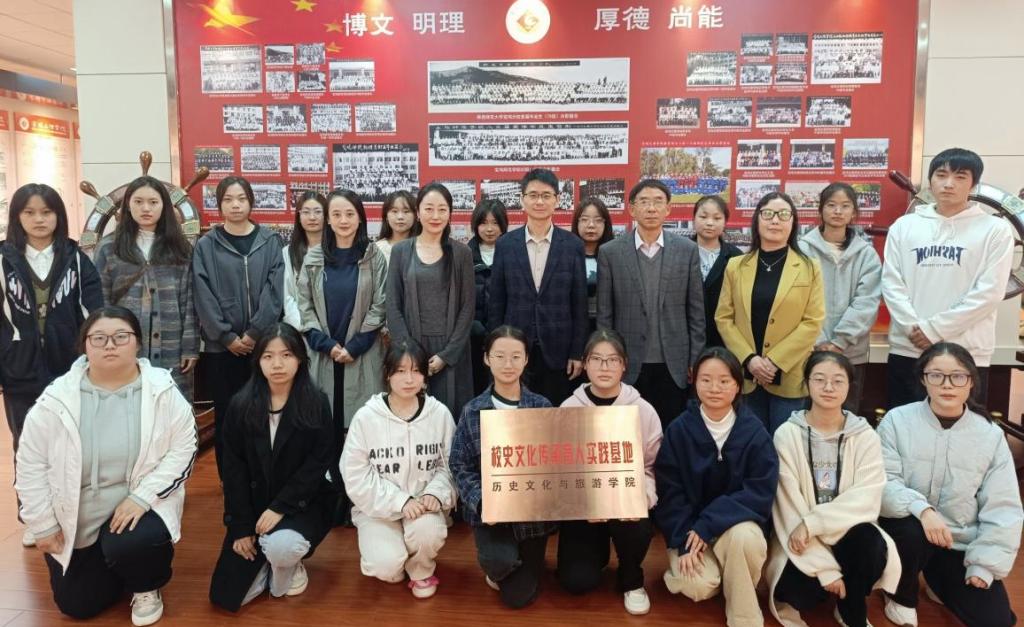 会上,表彰了上学期优秀校史讲解员,成立了由历史文化与旅游学院团总支负责的“校史文化传承育人志愿服务团队”。历史文化与旅游学院党委书记钱秀峰和档案馆馆长李建峰共同为“历史文化与旅游学院校史文化传承育人实践基地”揭牌。