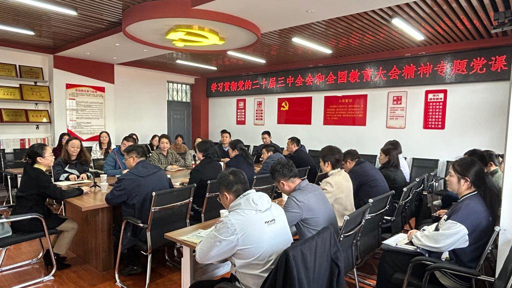 凡明锦以《深入学习贯彻党的二十届三中全会和全国教育大会精神,提升党性修养,推动学校改革发展再上新台阶》为题,回顾了党的二十届三中全会和全国教育大会的关键内容。她强调,学习贯彻党的二十届三中全会精神和全国教育大会精神,要牢牢把握教育是国之根基、科技是第一生产力、人才是第一资源核心要求,以实际行动践行“为党育人,为国育才”初心使命,在推动教育高质量发展和学校建设高水平大学中不懈奋斗,建功立业。她指出,党性修养是党员在政治、思想、道德品质和知识技能等方面按照党性原则进行自我净化、自我完善、自我革新和自我提高,全体党员干部要对标新时代好干部标准,主动顺应高等教育高质量发展的时代要求,修好身,做到大处着眼、小处着手;用好权,做到认识权力、规范权力;律好己,做到固本培元、谨言慎行,谋实事,做到把握规律、科学决策;创实业,做到真干事、干成事,积极勤勉,精益求精,为学校事业高质量发展作出应有贡献。