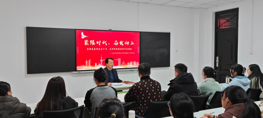 于建伟以“新时代新青年在发展新质生产力中的担当作为”为题,从党的二十届三中全会精神和《中共中央关于进一步全面深化改革推进中国式现代化的决定》出发,重点围绕新质生产力的提出背景、科学内涵、与传统生产力的区别以及青年学子在发展“新质生产力”下的责任和使命等方面进行了分析与讲解。他指出,习近平总书记关于“新质生产力”的论述,不仅是对马克思主义生产力理论的创新和发展,也为当前我国在新时代背景下实现高质量发展、推进中国式现代化提供了行动指南。希望全院师生员工要深入学习领会党的二十届三中全会精神,从发展新质生产力的举措中汲取推动学校高质量发展的智慧力量。