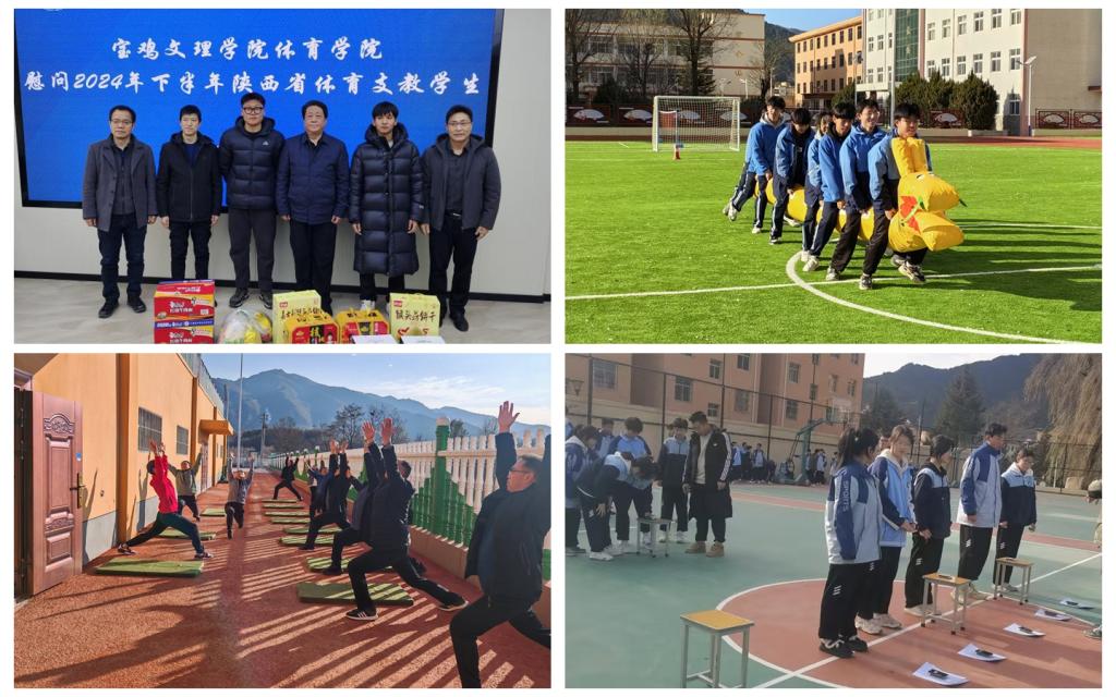 按照陕西省体育局要求,结合beat365官网“双百工程”工作实际,2024年下半年体育学院安排5名体育教育专业学生在太白县的4所学校进行体育支教工作。体育学院党政领导与支教学校的师生进行交流,看望慰问支教学生,了解他们的工作、生活情况,勉励他们要以“四有”好老师的标准严格要求自己,勤于学、善于思、敏于行,在支教工作中锻炼提升自己,努力做一名优秀的体育教师。